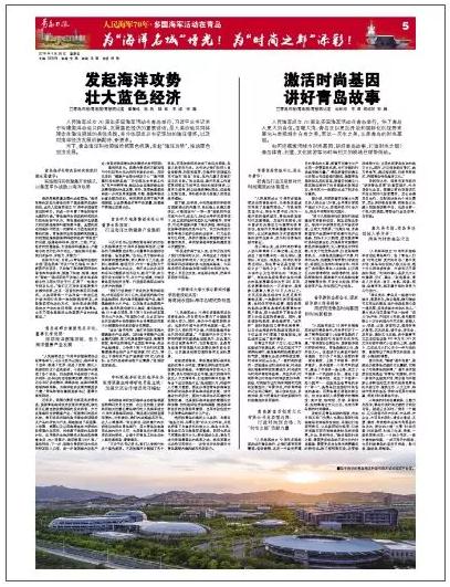 張國防董事長在采訪中說,習近平總書記出席在青島舉行的慶祝人民海軍成立70周年多國海軍活動,讓我倍感自豪、備受鼓舞。總書記關于海洋命運共同體的重要闡釋,我認真學習了幾遍,感到心潮澎湃、激動萬分。作為一家正致力于海洋生物產業的企業,我們將以此次活動和總書記重要講話為動力,鼓足干勁,努力提升自主創新水平、壯大產業規模,為推動青島藍色經濟發展、打造國際海洋名城作出更大的貢獻!