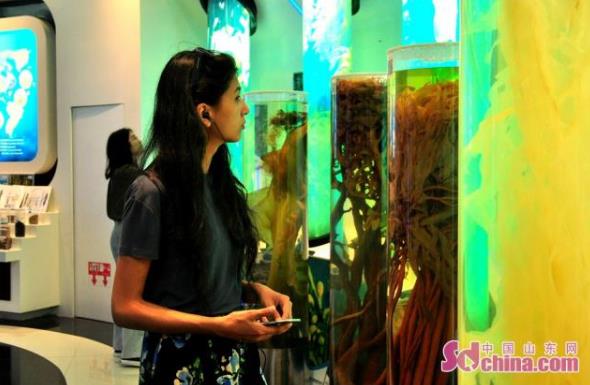 在海藻生物產業館,展示了海藻在日常食品、藥品、保健品、日化用品、護膚品、海藻有機肥料、生物醫用材料等多個方面的應用,通過實驗演示為采訪團成員解開它的“真身”,為他們帶來腦洞大開的海藻新生活之旅。