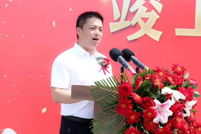 江蘇省大豐港區委常委、大豐港經濟開發區黨工委書記、管委會主任黃同城,青島明月海藻集團董事局主席張國防,青島明月安欣營養科技有限公司總經理杜可振出席儀式并致辭。